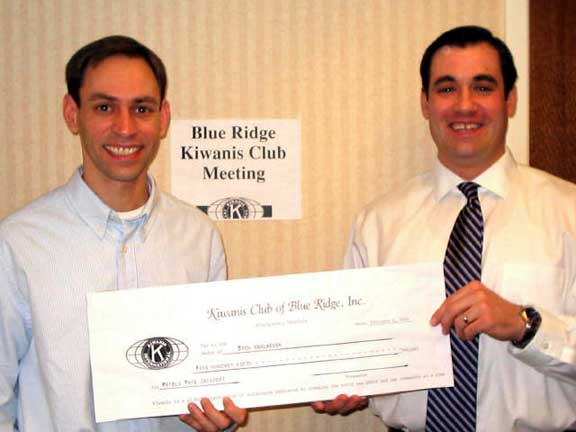Drew Vanlaeken (left) receives a check for $550.00 from Kiwanis Club