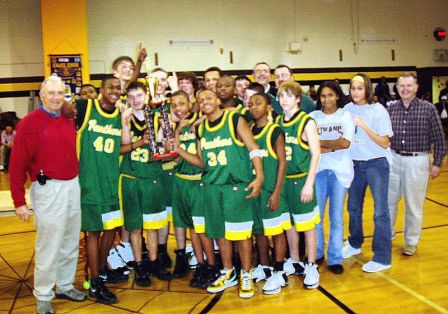 Eight teams participated. Four teams were from Williamsburg: James Blair, Berkeley, Toano, and Walsingham Academy. Four teams came from elsewhere on the Peninsula: Queens Lake, Western Branch, St. Christopher, and Yorktown. Each team played three games over the two-day period, and nearly 150 young athletes competed. The Queens Lake Panthers took first place honors by defeating the Yorktown Falcons in the championship game. The host James Blair Spiders finished fourth. The Kiwanis Club of Colonial Capital’s sponsorship of this event covers the expenses for the tournament, while the proceeds taken at the door by Kiwanis volunteers are used to benefit James Blair athletic programs. This year a record $3,200 was collected. Since it