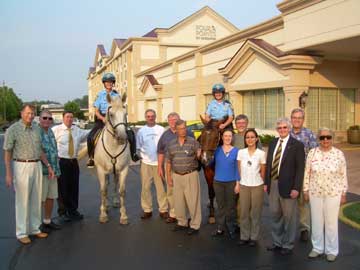 Manassas Club Horsing Around The Kiwanis Club of Manassas had some very special guests at our July 17th meeting. 1st Sgt. Kim Chinn and 1st Sgt. Susan Crosbie of the Prince William County Police brought their partners from the Mounted Patrol Unit, a quarter horse named Dudley and a draft horse, Virginia "Ginny" Rose. more |