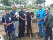 Kiwanian / Wilmington DE Fire Chief, Willie J. Patrick, Jr. and his wife, Cynthia hosted four members of the Wilmington Fire Department's Explorer post in the City Community Project Day, spending about two hours helping out at the Brandywine Urban Garden.