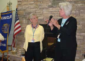 As is the tradition for the annual celebration of the club's chartering, the widows of several of past members of Kiwanis were in attendance. Pictured left are seated in the front (L to R) are Edna Pilatu and Esther Gallagher. Seated behind the table (L to R) are Anne Fowler, Sharon Armstrong, Betty McDermott, and Marge Rehkemp. Stand (L to R) are Maureen Begley, Anita McLaughlin, and Gloria Liebling. Affectionately now known as "Ladies of the Day" as the club's president, Corky Widerman dubbed them. It was a good day for local Kiwanians to honor their beginning and remember the past!