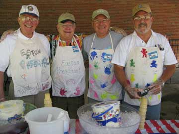 On May 22nd, the Virginia Beach-Combers "Golden-Age" club (our membership weighs-in at 43 strong, at an average age of 80.1 years!) conducted its annual ice-cream service at our local (Norfolk, VA) Easton Pre-School - as part of the school's Annual Olympics. While memories fade at this stage, we do have records that show we've hosted this ice cream service for well over the past 10 years. During a full day of outdoor activity for the pre-kindergarten age children, Beach-Comber Kiwanians "foot the bill" and then spend the day as ice cream servers to some 140 children. An accepted "rule of conduct" among our member-servers allows them no more than a 2-scoop break in either the AM or PM shift! Pictured here is our morning service team, L to R, Ed Frame, "HL" Marks, Dave Williams, and Don Super.