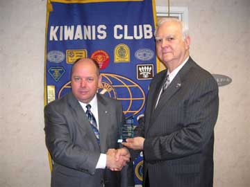 Kiwanis Club of Waldorf president, Rob Parks, shown on left, presents club member, Jerry Peuler, with the Kiwanis International Life Member Status.  Jerry is Past Governor of the Capital District and candidate for International Trustee.