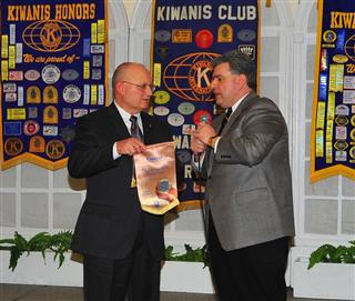 (Above) Immediate Past Lt. Governor Millie Kriemelmeyer was assisted by President Paul and KI Trustee Jerry Peuler in presenting the 2008-2009 KI Distinguished Club Award to Immediate Past President Rob Parks.