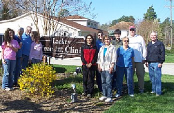 The Tabb and York Kiwanis Clubs held their Kiwanis One Day spring cleanup on April 4, 2009 at the Lackey Free Clinic. Thirteen Kiwanis members worked all day pressure washing the outside, washing the windows inside and out and sprucing up the grounds and building.