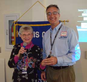 Pictured is Rick Baldwin, Manager of the Mid Atlantic Regional Spaceport (MARS) at Wallops Island, Virginia with Kiwanis Club of Greater Ocean Pines - Ocean City President, Corky Widerman after he spoke to the club at their weekly meeting at the Ocean Pines Country Club.