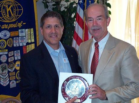 New president Steve Staples (right) recognized outgoing president Tom Carnevale (left) for his leadership of the club during 2009-2010.