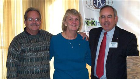 Kiwanis Division Lt. Governor Tim Meyer (right) congratulates club secretary John King (left) and treasurer Kathy Young upon their installation.