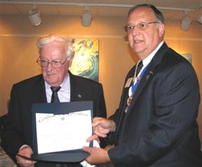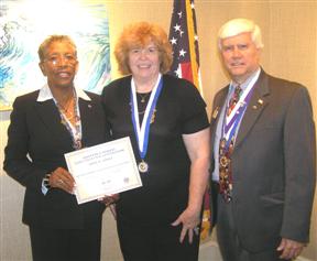 The Rehoboth Beach Kiwanis Club celebrated its 80th Anniversary, using the occasion to recognize members' accomplishments over many years. Gov. Art Riley presented the Legion of Merit to long-time members, PLG Ray Wilson (1969) and Jay Wingate, recognizing them for 45 and 47 years as Kiwanians, and then presented Pres-Elect Ken Drerup the Human and Spiritual Aims Award. Gov. Riley presented Past President James G. Horn, grandson and son of the club's charter members, as a recipient of the prestigious George Hixson Award for his many years of service. The new Awardee and Gov Riley then surprised President Cummings when they also presented her with a Hixson Award. The Club now has awarded eight Hixson's. Then Past Gov Bob Cressy stepped to podium to present Past President George Blacklock and Secretary Rosemary Cummings with the Distinguished Club awards for 2006-07. Past Gov Cressy also recognized PLG Rose Poole as Distinguished Lt. Governor for her service. PLG Poole, representing the Seaford Club, which sponsored the Rehoboth Club in 1928, presented the Rehoboth Club with the banner and flag in opening ceremonies.