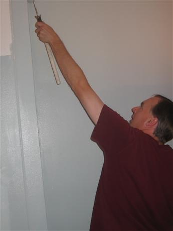 Also, pictured are President -Elect Barb Ritter and Board Director Bill Reusing, as they tackled the daunting task of repainting the vaulted ceiling above the staircase.