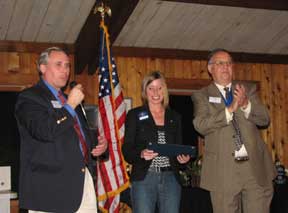 Charter President Shannon Rose is presented the Gloucester Kiwanis Club Charter dated March 7, 2009, from Kiwanis International by Governor Tom Ganse and Immediate Past Governor Art Riley. This is a historic moment for the Club.