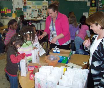 One of Mercury 64's K-Kids Clubs (Mallory Elementary, Hampton VA) recently received a presentation on Habitat for Humanity. In response, the kids put together snack bags for the Habitat volunteers. Pictured with the Kids is the faculty sponsor, Mary Hollifield and the representative from Habitat for Humanity.