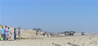 Rehoboth Beach Kiwanis Club celebrated KiwanisOne day a little early so they could participate in the annual Beach Grass planting service efforts of Delaware Natural Resources (DNREC). Kiwanians, Key Club members from 3 Clubs and K-Kids from 3 Clubs and their family members joined in efforts to replant the beach grass the when recent storms ravaged the dunes. The work this year was particularly important to the area. The ocean almost seemed to approach the road and the bay when viewed from the bridge. Travelers along Route 1 were often diverted when the sands covered the road. The Seashore Dunes were first "pushed into place" after the December and February storms sliced them. Then the volunteers had their day in the sun planting both sides of the new dunes with beach grass. After their hard work, the local mobile anglers treated the workers to lunch from their canteen. Everyone finished their work smiling and agreed it was a fun outing. Several Key Club members happily went for a dip in the frigid ocean. The pictures and the people tell the story.