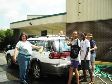 The Spring Dell Center Aktion Club held a car wash fundraiser at the center on July 2, which netted $127 to be donated to Sleep Kits, one of their many service projects. Shown in the picture are Linda Markham, Aktion Club Advisor; Candice Ogden, former Aktion Club Advisor, McDonough High School Key Club members, and a mom of an Aktion Club member. Lt. Governor Millie Kriemelmeyer's car sparkled after their wash & polish! The Aktion Club is sponsored by the Kiwanis Club of Waldorf.
