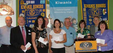 The Kiwanis Club of the Colonial Capital recently presented grants to several organizations. Pictured here are Kiwanis presenters and the recipients, from left to right. Corky Umberger and Dave Pribble of Olde Town Medical Center, Art Kohler and Deena Walls of Grove Christian Outreach, Rebecca Bresee of Colonial CASA and Al Ermaliniski, Sarah Meacham of Avalon and Lee Schelley, and Linda Lockwood of Child & Family Connection and Wally Glisson (not shown).