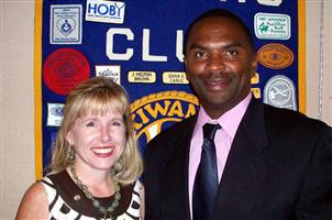 Darryl Whiten, Director, Electronic Monitoring/Outreach Supervisor Program, Commonwealth of Virginia, 2OL Judicial District Court Service Unit, Department of Juvenile Services, Leesburg, VA., was a recent speaker to the Kiwanis Club of Frederick. He spoke to the group about his involvement with kids in the youth basketball program in Frederick County and the programs offered to these young people. He also spoke about his role as a probation officer and his job to help shape and mold those youngsters who have come under his jurisdiction in the legal area. Kiwanian Consie Meyers is with the speaker.