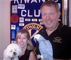 The First Annual Presidential Pet Election for Frederick County was the topic of guest speaker Phil Heffler's talk to the Kiwanis Club of Frederick. The Election, a fun fundraising event, wll benefit the Frederick County Humane Society and the Frederick County Chapter, American Red Cross. There are three Party Affiliations: Elephant Party, Donkey Party and Flea Bag Party, under which one may enter their pet. The event is being promoted by Catoctin Charities. PIctured are Consie Meyers with "Sarah" and Phil Heffler with "Quincy"; both pets have been entered as candidates for the presidential position. Mr. Heffler, Financial Adivsor with First National, had "Quincy" say a few words to the group.