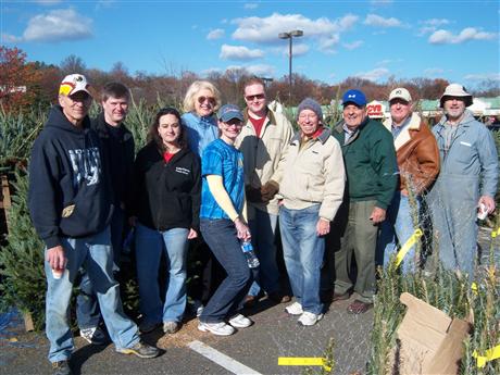 Unloading 800 Fraser fir trees from a 40-foot tractor trailer on Saturday morning, November 27, at 8:00 am was the way the Mount Vernon Kiwanis Club (MVKC) began its final preparations for its annual tree, wreath, and garland sale at the Belle View Shopping Center's parking lot near the corner with Fort Hunt Road. These high quality yet moderately priced trees from Powers Tree Farm in southwest Virginia form the main financial basis for the various volunteer community service programs that the MVKC will carry out next year. The ten MVKC members were assisted by a dozen of their Kiwanis Key Club students from West Potomac High School and South County Secondary School, 3 officers from its Kiwanis CKI Club at NOVA Community College (Alexandria campus) plus five members from the Tyson's Corner Kiwanis Club, including the Capital District's Governor-Elect, Jeff Wolff.