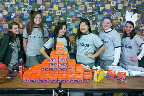 Newark, Delaware's St. Mark's High School Key Clubbers. Shown with the results of their Key Club "Trick or Treat" fund raiser of money for UNICEF and canned goods for The Food Bank of Delaware are (L to R): Kelsea Meadows, Kelsey Jenkins, Victoria Gagnon, Ellen Yun, Rachael Wayne and Taylor Nieves of Newark, DE's St. Mark's HS Key Club.
