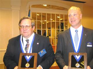 (Right) The Club then took this occasion to recognize many members with Legion of Merit Awards for service ranging from 25 to 47 years. The highlight of the evening occurred as two Dover Kiwanians, PLG Allan Kujala and PP Charles Marks received Hixson Awards. A great night for Kiwanis and Interclubs in Division 11.