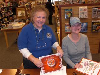 (Above) Wrapping at Borders Books for the holidays, pictured left to right, Judi Gorney, member of KCLP; Amanda Hill, Director KCLP