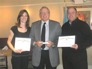 When Rehoboth Main Street President Drexel Davison and Jennifer Barger, Executive Director, recently attended a Rehoboth Kiwanis Club meeting, the intent was to discuss Main Street and where the Main Street organization was going under their new leadership. And Kiwanis wanted to discuss ways to improve the July 4 Fireworks Parking event. Instead, Jenny and Drexel asked questions about Kiwanis, what does Kiwanis mean and what it does. Drexel is well known at the local elementary school, as he appeared as Daddy Warbucks in the recent musicale, Annie, and enjoys working with kids. Both Jenny and Drexel agreed they would like to help whenever they could and then they asked, "What do we have to do to join?" The members sitting at their table were somewhat taken back. Jim Kunkle immediately handed them the Kiwanis brochure, Changing Tomorrows Today and gave them some Kiwanis history, its purpose and the service provided in the Coastal communities. Jim indicated there was an application form included and if they were interested in joining, he would sponsor them. On the spot they completed the applications and gave a check for the New Member dues. A great day for Kiwanis. At the January Board meeting, they were approved for membership. Next step, Induction and Member Orientation and yes, Jim Kunkle will receive two keys for bringing in two new members. (Above) President Ken Drerup thanks Jenny Barger and Drexel Davison for addressing Kiwanis and welcomes them as new members.