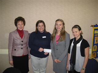 On Jan 13, Alice Herring, Trinity Lutheran School assistant head of school, gave a presentation on the school's Pilot to Co-Pilot program to members of the Kiwanis Club of Mercury 64. Joining Alice were two of the program's mentors, Trinity eighth-grader Ashley Gailey and Trinity seventh-grader Caroline Thatcher. Pilot to Co-Pilot matches mentors (Pilots) from Trinity with five-year-olds (Co-Pilots) from Newport News Schools who need a bit of help with their reading skills. The children receive a packet with three-to-five new books through their school library. The mentor then calls the child twice a week and reads them a book over the phone. This program is in its seventh year and has been successful in improving the children's reading skills. At this meeting, Trinity was presented with a $500 check from Mercury 64 to support the program.