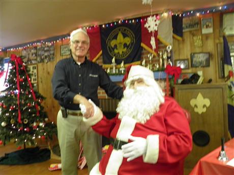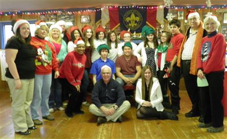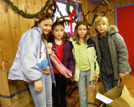 Coastal DE Kiwanis Club hosted its first Annual Christmas House just before Christmas. Just six weeks before the site of the October Haunted House, the Kiwanis house was now transformed into a Christmas Cottage, with a brightly lit and decorated Christmas tree. Outside, candy canes and garland welcomed young visitors and their parents while inside garlands of light and green wreaths were around windows. Ms. Margie and Ms. Regina hosted the refreshment table which was laden with home-made cookies and lemonade. Ms. Julie invited the guests to play Christmas bingo and Elves Robin and John assisted the kids in making cards for parents and Santa. President Jim Kunkle welcomed Santa Kind who greeted each child, while Key Club elves handed out stockings filled with treats and other elves helped each child pick out a toy gift to fill their West Marine shopping bag. The Key Club elves provided a musical treat with festive singing, solos from band members, and the color guard giving a special candy cane review. Then the K-Kids joined in the fun singing about Rudolph the Red-nosed Reindeer, Frosty the Snowman, and the Twelve Days of Christmas. A wonderful time was had by all.