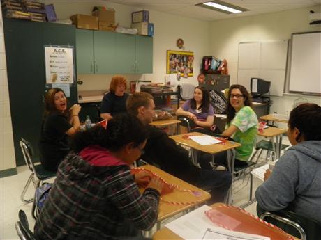 When Peggy Chandler from Harbor Healthcare and Rehab Center in Lewes, DE visited the Coastal DE Kiwanis Club in November, the members asked if there was something the K-Kids could do for the residents. Ms. Chandler indicated it would be nice if the residents had something small for their tray Christmas morning. With that came a new project the K-Kids and the Key Club could do for the nearly 200 residents First, the Key Clubs and K-Kids made a simple napkin ring with Christmas stickers, two stickers to a ring, although some kids got carried away and put four or five on a ring. Next, a favor cup with bright red or green tissue paper wrapped around a small cup, and a small tree or stocking affixed to the front,. The kids then filled the decorated cup with mints, small chocolates, a strawberry filled jelly candy, and topped with a small candy cane. Appropriately each child made a small greeting card with drawings and stickers to send greetings from the K-Kids. Advisors Ms. Cummings and Ms. Spaulding delivered the trays of napkin rings (each wrapping a napkin), along with a huge basket and two trays of the favor cups and a sack full of greeting cards. Just like Santa. Ms. Chandler was delighted to receive these special hand-made treats and afterwards reported, " The Christmas favors and napkin holders were such a hit!! I cannot thank you enough. ... such a wonderful generous gift!"