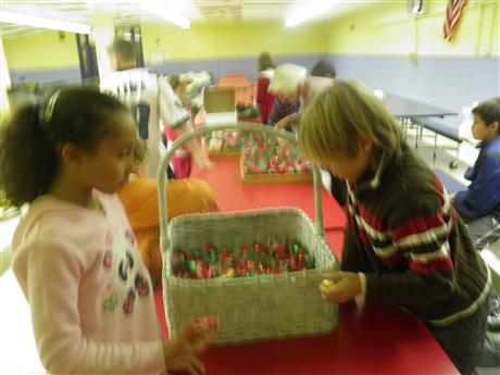 K-Kids examine candy filled favors