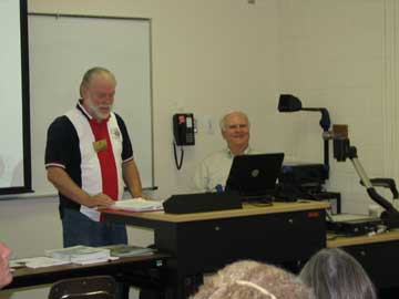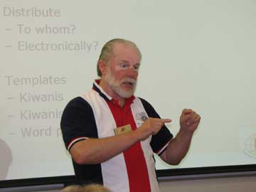 Past Governor John Tyner II, a Kiwanis Certified Trainer, conducts the second of three sessions of Club Officer President Elect training to help prepare them for their 2009-2010 term as President. John is assisted by Past Governor and Kiwanis International Candidate for Trustee Jerry Peuler. |
