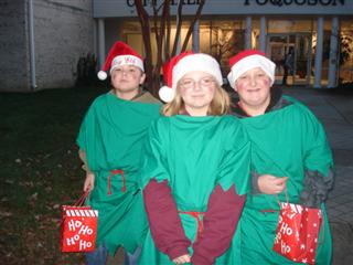After Kiwanis Club President, Walt Burns welcomed the large crowd, the Poquoson Middle School Chorus entertained everyone with carols. The City Mayor, Gordon Helsel, assisted by a dozen children "Threw the Switch" that illuminated the massive tree. Suddenly, the wailing of sirens announced the arrival of Santa Claus mounted on a big, red fire truck and accompanied by four elves from the Builders Club. Santa and his elves gave candy to the children and a great time was had by all.