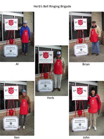 Our Club, along with members of the NOVA Community College CKI, supported the Salvation Army Kettle Program for 2010 and collected $6,232.11. For the record, we logged 156 hours of bell ringing in spite of some severe cold, snowy and windy days. Note: CKI contributed 18 of the total hours logged. By being a volunteer supporters we saved the Salvation Army $1.248 in bell ringing fees.