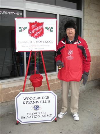 "It gives me personal satisfaction in helping someone else," said Ken Stang, a member of the Kiwanis Club of Woodbridge. He has been volunteering as a bell ringer for 12 years and takes a two-hour shift at the Walmart near Dumfries every day between Thanksgiving and Christmas.