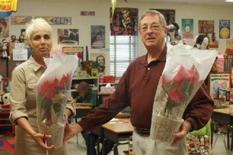 President Jim Chellew distributes poinsettias at Rena B Wright