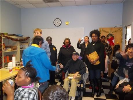 On December 17, the Mount Vernon Kiwanis Club (MVKC) distributed 50 Wal-Mart gift certificates worth $10 each to regular after-school program participants of the Sacramento Neighborhood Center (SNC) in Sacramento Plaza. MVKC Bruce Malkin handed the cards to each child, but Joanne Malkin, Vivien and Richard Peterson were also in attendance. Sacramento Neighborhood Center (SNC) Director Telesia Taylor-Boyd expressed the appreciation for all the awardees, and the children also thanked the MVKC, both individually when they received their gift card and as a group at the end. The MVKC does this annually to be sure that each worthy recipient has the means of choosing a gift for him or herself with the guidance of their parents. There was lots of food and drinks, and entertainment was provided by the Mount Vernon High School Madrigal Singers, so it was truly a Merry Christmas party!.