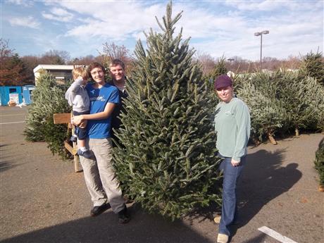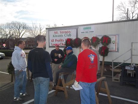 Each year, MVKC sells trees, wreaths, and garland. Net profits average $25,000 which supports a wide range of community service, student leadership and other youth programs. On July m26, 815 Fraser Firs, wreaths and garland were delivered to the Belle View Shopping Center's parking lot from Powers Tree Farm in SW VA. MVKC members, Key Clubbers from Mt. Vernon, West Potomac and South County High Schools, and NOVA Community College's CKI members (Alexandria) all helped to offload the trees in record time. Fifteen trees will be donated to military families at Fort Belvoir, VA, who have a family member serving our country in Afghanistan. MVKC members take 4-hour shifts selling on the lot daily,which is open 12-8 weekdays and 9-8 on weekends. Sales are very brisk, and will be ongoing until trees are sold out. MVKC member Paul Mehler is the Event Coordinator, and has been for some years. The sale has been held the last 45 years at this location, and many customers are repeat buyers. The first buyers this year were the Day family, Michael and Janelle, and their two sons, Chris and Jason.