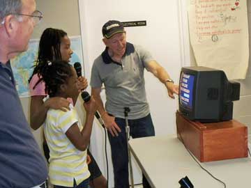 The Mount Vernon Kiwanis Club hosted its second karaoke at the Creekside Neighborhood Center on Janna Avenue on June 8. UCM Youth Counselors Sandra Medrano and N'hawa Louisa Tangula gathered about 30 of their youngsters together at the Center for a special afternoon of sing-along with Bob Valone, Joanne Malkin, and Bruce Malkin of the Kiwanis Club. The sign-up sheet was full to overflowing, and the participation rate was very high, as the children sang along with the words and music to their favorite popular songs, especially purchased for their age group. Afterward, Sandra and Louisa distributed snacks and held a raffle with great prizes. The attached pictures were taken by Bruce Malkin, President of the Mount Vernon Kiwanis Club.