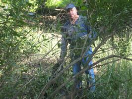 (Above) Jack Kruger , a member of Tabb Kiwanis Club, is working hard picking trashes in the woods.