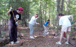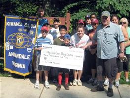 The Kiwanis Club of Annandale, Fairfax VA, donated $2,000 and organized a volunteer work day at Hidden Oaks Nature Center’s "Nature Playce" in Annandale on Saturday, June 19th. The goal was to rejuvenate the Nature Playce, an Eagle Scout community resource visited by thousands each year. The thirty-plus Kiwanians and members of the public rebuilt the enclosing worm-rail fence, re-chipped the encircling 1/3 mile loop trail, repaired the entrance gate, refurbished the sandboxes, cleared the campfire circle of weeds and chopped the old rails for firewood. Eight young volunteers aged 6 through 11 watered plants, picked up trash and cleared the duckweed that was choking the pond. The cash donation will support educational programs that will positively impact up to 500 children and youths and help fund a new water feature in Nature Playce.