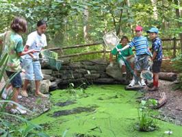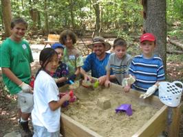 Nature Playce, with its fencing, benches and "dinosaur discovery" area, was constructed several years ago by Eagle Scouts and Girl Scouts. It is 1/3 acre of forested woodland but with low impact split rail fencing to allow preschool children to explore within its boundaries. Kept clear of poison ivy, it’s a place where kids can be kids and play outdoors: make mud pies and forts, dig into woodchip piles, build sand-castles or just rest on a bench and watch the clouds float by.