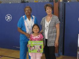 Left to right: Millsboro Kiwanian Audrey Smith, East Millsboro Elementary second grade Terrific Kids Leapster winner Amy Wong (Will Kenney absent), and Kiwanian Marianne Smith.