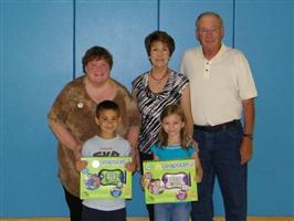 Left to right: Millsboro Kiwanian Audrey Smith, East Millsboro Elementary first grade Terrific Kids Leapster winners Sarah Craft and Camden Keeler, and Kiwanian Marianne Smith.