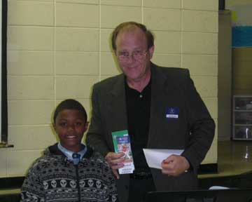 Darrion Hutchins, winner of the Washington Nationals baseball tickets with Jim Gorney, Kiwanis Club of LaPlata Director.