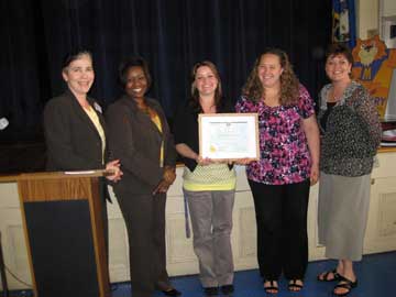 On May 19th, the Mallory Elementary School, Hampton Virginia, K Kids Club was presented its charter. Shown are Phyllis Henry, By the Bay Club; Ursula Hill, Principal at Mallory; Kristen Mechling and Mary Hollifield, Faculty Sponsors; and Amy Thorstad, Mercury 64 President. This K Kids Club was initiated by By the Bay and sponsorship was transferred to Mercury 64 in January.
