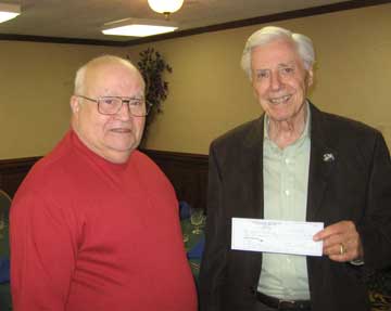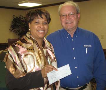Troy Collier (on the right) received a check for $500 for Youth Challenge Ministies from Kiwanis Club President, Chuck Root.