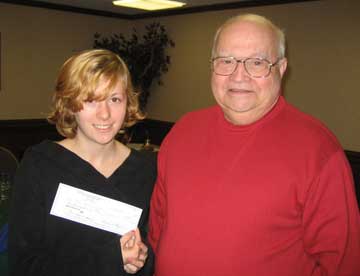 Eliza Fleming, member of the Circle K International chapter at Christopher Newport University received a check for $100 from Chuck Root, Kiwanis Club President, to support Circle K community service projects.