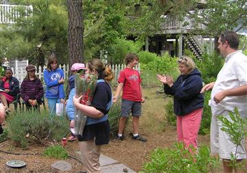 Rehoboth Beach Kiwanis Club celebrated the Installation of Officers for their three Key Clubs in a unique way. Officers from Cape Henlopen HS, Indian River HS, and JM Bennett HS had a joint installation. The weather was a little ominous that Sunday, but everyone was there. The current Officers, Key Club Members, Kiwanians, Parents, Faculty Advisors, and K-Kids gathered for the festivities. The youngest attendee was two month old Dawson McCabe, son of Kiwanians Brian and Lisa. Just in case, the first order of business was a picnic lunch of hamburgers, hot dogs, pizza, salads, brownies, and all the other goodies. Everyone sat near the food under a covered area, a great way to meet everyone from the three Clubs and introduce each other. Then the sun started to appear, so they wandered into the garden. Ah, the perfect place for the Installation. They set up the flag and everyone gathered around. After the Pledge of Allegiance, the Key Club and K-Kids Pledges, Kiwanis Lt. Gov. Rosemary Cummings and Kiwanis Advisor installed the Officers. Normally, the Key Club Lt. Gov would have this honor but the new Division 11A Lt. Gov and member of JM Bennett Key Club, Paige Curtis, was in Williamsburg for the first Key Club Board Meeting.