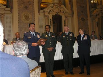 For the 50th consecutive year, Wilmington Kiwanis Club celebrated Armed Forces Day May 12 at the Hotel DuPont. The event was sheer precision, as every Military event should be, from the opening introductions, the posting of colors, to the message of the Guest Speaker BGen Hugh Broomall who had fond memories of passing the hotel wondering what all those Kiwanians in there were doing. Major General Francis Vavala presented Special Unit Awards to the 166th Maintenance Group and the 72nnd Troop Command. The Middletown HS Jr. ROTC posted and retired the colors. Captain Andrew Werner gave the Invocation and the Benediction. President-elect Dave Wilson in a Special Program gave tribute to Frank Hayes and recently deceased PLG Paul Miller, who previously arranged the celebration. Club Secretary David O'Connell read a stirring and sometimes humorous rendition of the Young Soldier's Letter Home poem he received from Paul Miller. The Armed Forces band played TAPS to remember the fallen service men and women. Kiwanian Art Eppihimer led the singing of God Bless America adding to the dignity of the ceremonies. Everyone was amazed, pleased and noted how, like clockwork the ceremony and meal lasted 1 hour 20 minutes. Wilmington Kiwanians coming together as team made this a very special day for all who had the privilege to attend, including a contingency of Pas Lt. Governors from the Pennsylvania District in West Chester and my guests and I - made the drive well worth it - to see this Distinguished Club of 91 years doing what it does best - recognizing the military and civic leaders of our community, as the Club serves their community and the children of the world. Thank you, Wilmington Kiwanis Club for a Job Well Done.