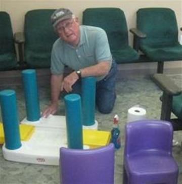 (Right, Tabb Kiwanians at Lackey Free Clinic)